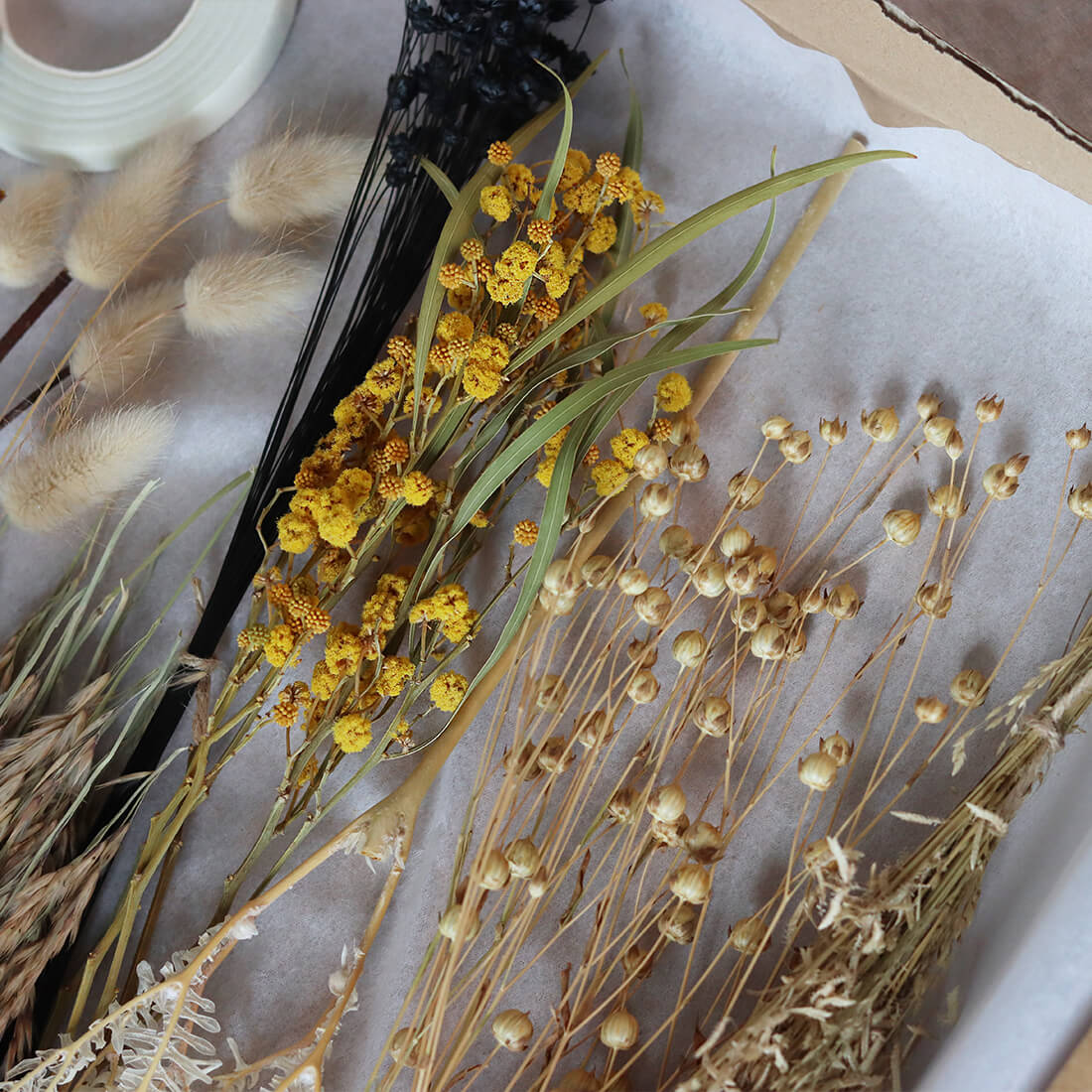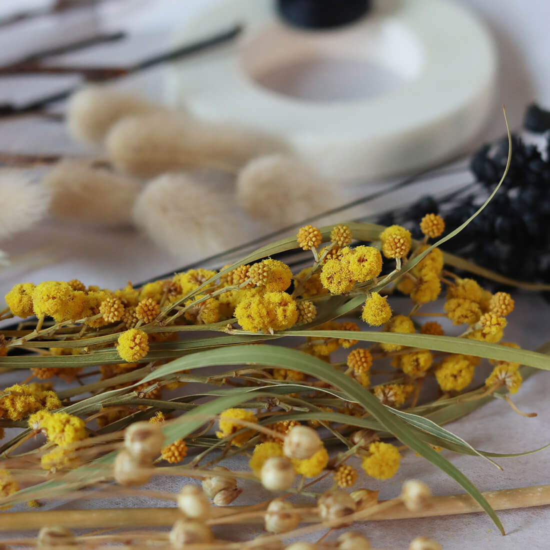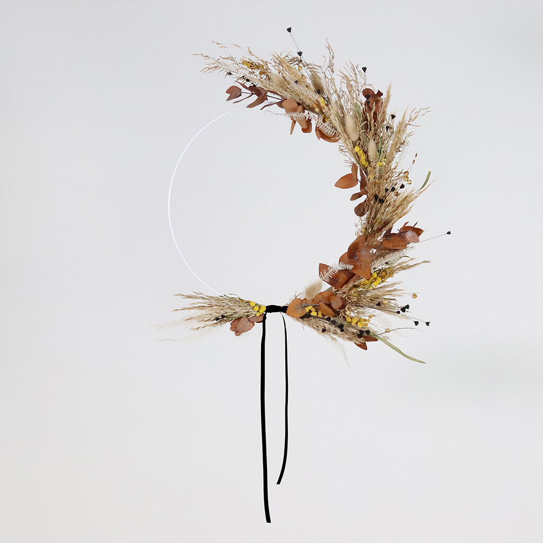 Warm sweaters, candlelight, crisp walks and sitting in front of the fire - we’re fully embracing autumn here at shida. Up the cosy factor with your own Scandinavian style indoor wreath using preserved foliage that won’t wilt. Beautiful preserved foliage in rich, autumnal hues punctuated with monochrome details will create a sense of hygge in your home. Simply follow our wreath making guide and use the floristry tape provided to attach small mixed bunches to the white wreath ring.